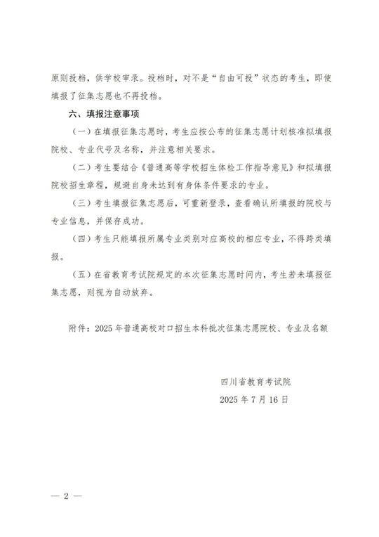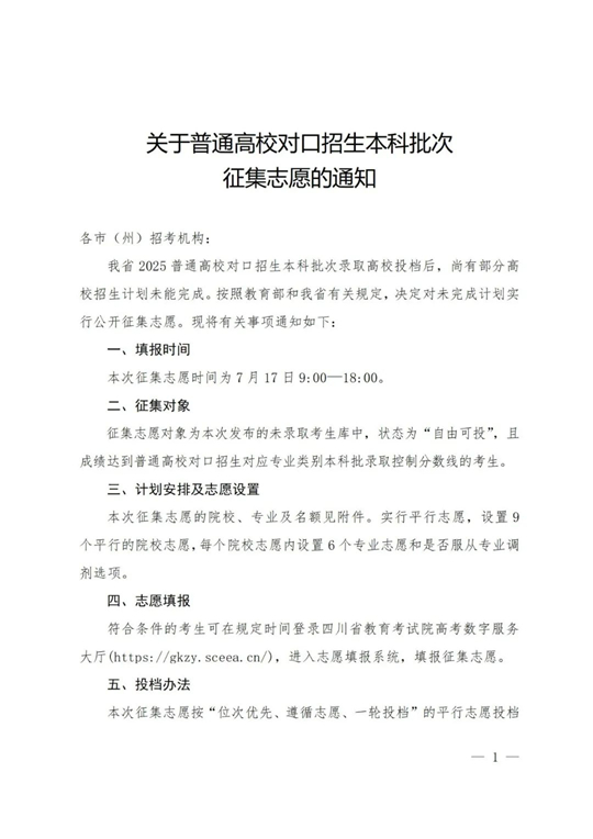 四川:關(guān)于普通高校對(duì)口招生本科批次征集志愿的通知