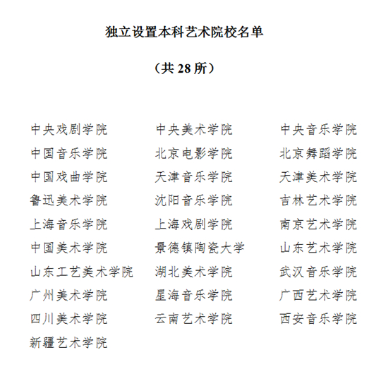 2.參照獨立設置本科藝術(shù)院校招生的院校名單