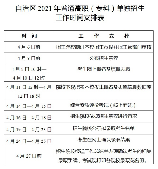 2.自治區(qū)2021年普通高職(?疲﹩为(dú)招生工作時(shí)間安排表