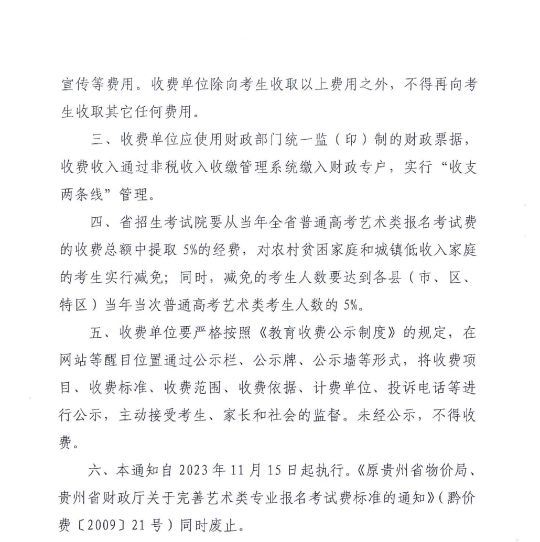 | 貴州省關(guān)于進(jìn)一步完善藝術(shù)類專業(yè)報名考試費及有關(guān)事宜的通知 黔發(fā)改收費〔2023〕802號 |