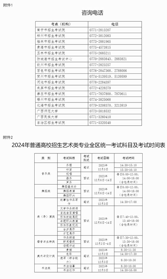 2.2024年普通高校招生藝術(shù)類專業(yè)全區(qū)統(tǒng)一考試科目及考試時(shí)間表