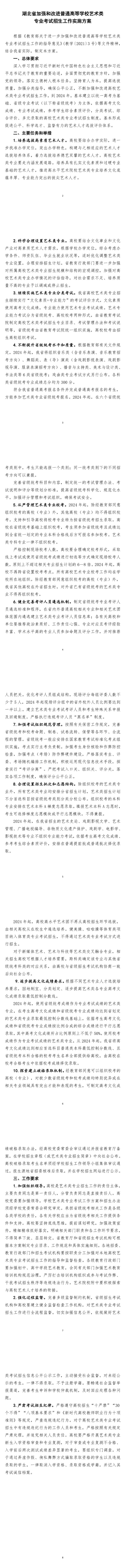 湖北省加強(qiáng)和改進(jìn)普通高等學(xué)校藝術(shù)類專業(yè)考試招生工作實(shí)施方案