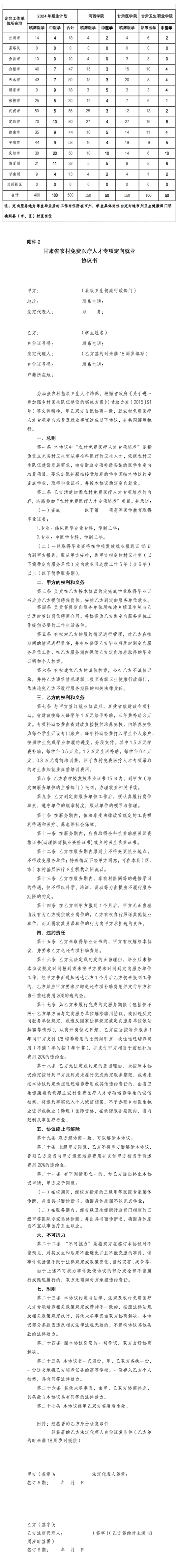1.2024年甘肅省村醫(yī)定向醫(yī)學(xué)生分培養(yǎng)院校和定向服務(wù)地招生計劃
