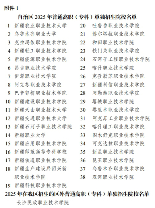 1.自治區(qū)2025年普通高職(專科)單獨(dú)招生院校名單