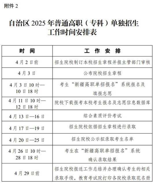 2.自治區(qū)2025年普通高職(?疲﹩为(dú)招生工作時(shí)間安排表