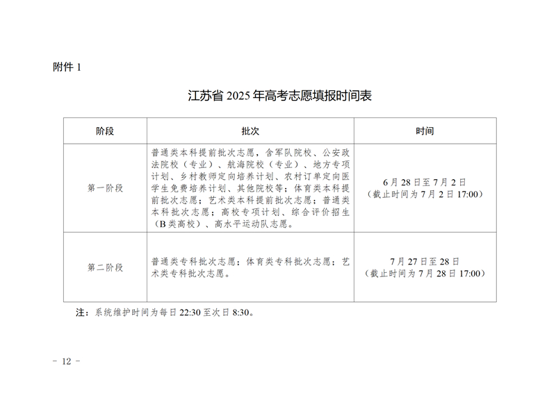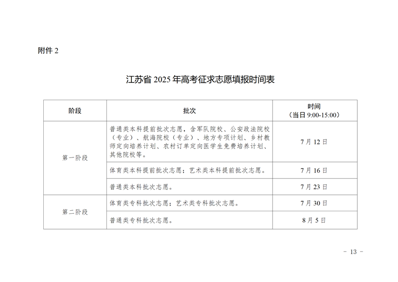 具體時間安排詳見《江蘇省2025年高考志愿填報時間表》(附件1)。