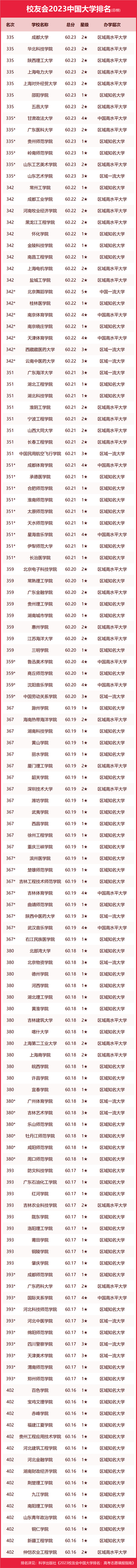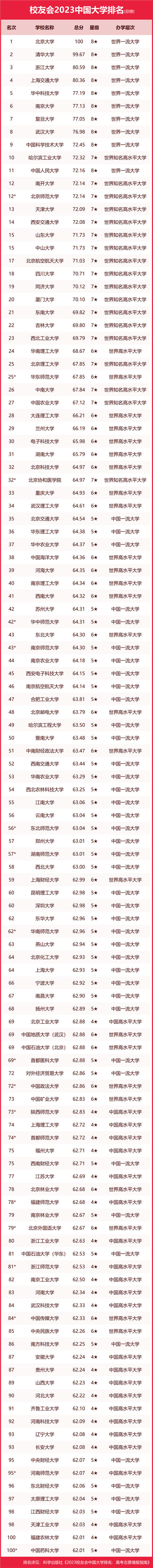 | 2023校友會(huì)中國(guó)大學(xué)排名完整榜單 |