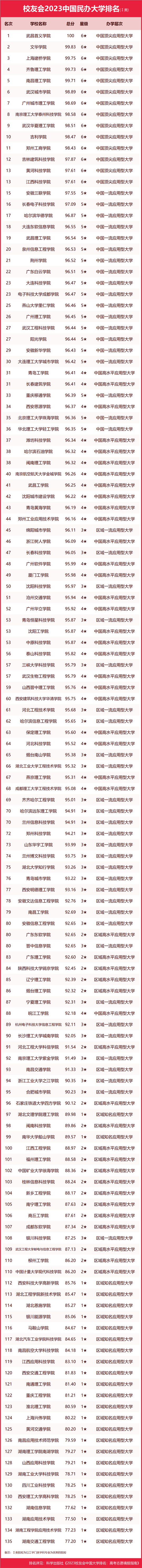 校友會(huì)2023中國(guó)大學(xué)排名(總榜)