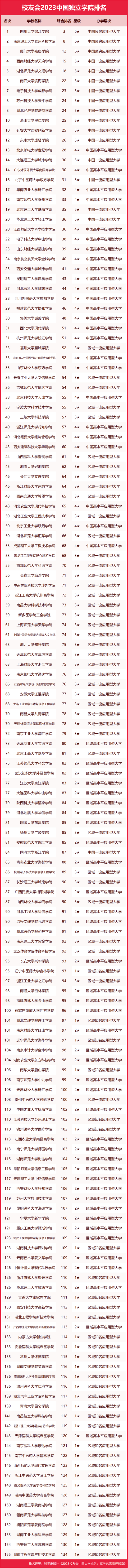 | 校友會2023中國獨立學院排名,四川大學錦江學院蟬聯(lián)第一 |