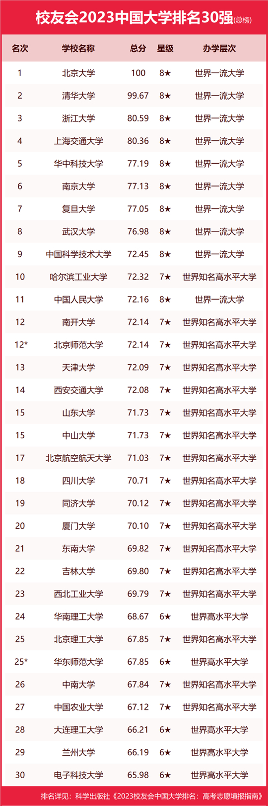 | 校友會(huì)2023中國(guó)大學(xué)排名發(fā)布 |