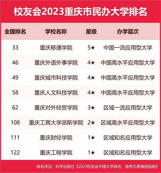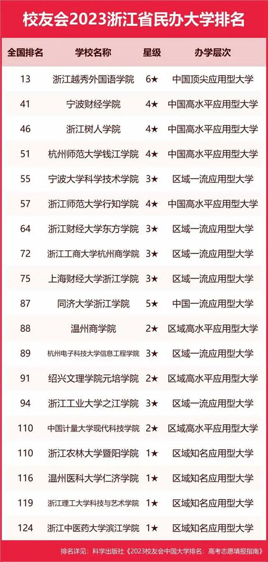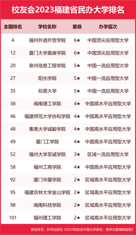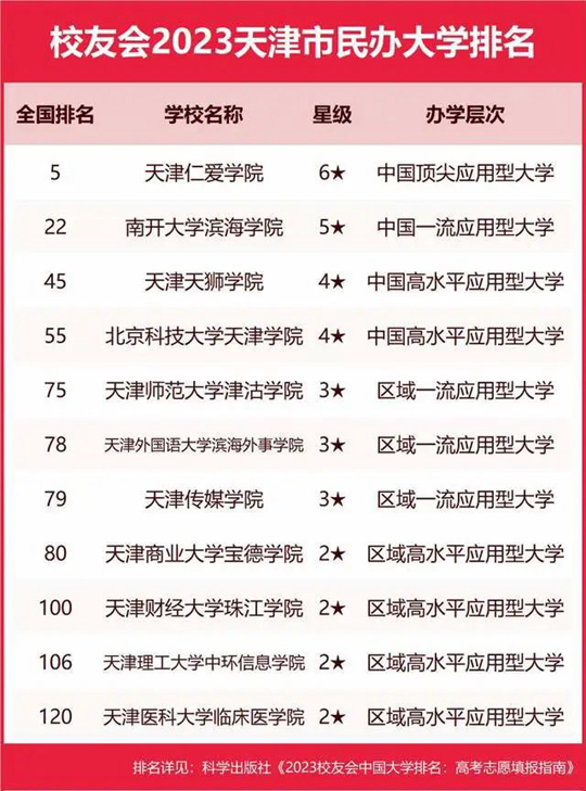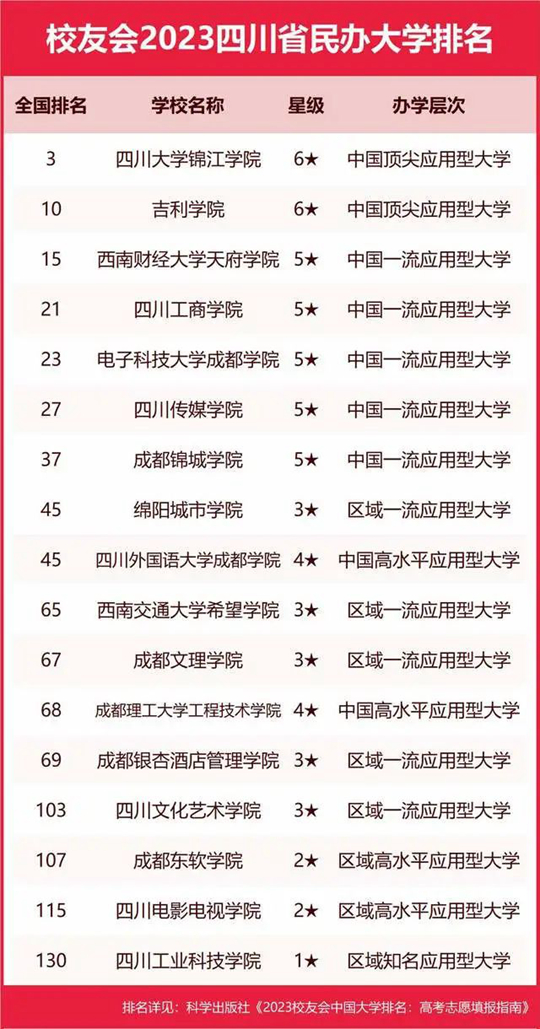 三亞學(xué)院、廣州南方學(xué)院、四川大學(xué)錦江學(xué)院、西安培華學(xué)院、天津仁愛學(xué)院位列2023中國(guó)民辦大學(xué)排名Ⅱ類前5強(qiáng)。
