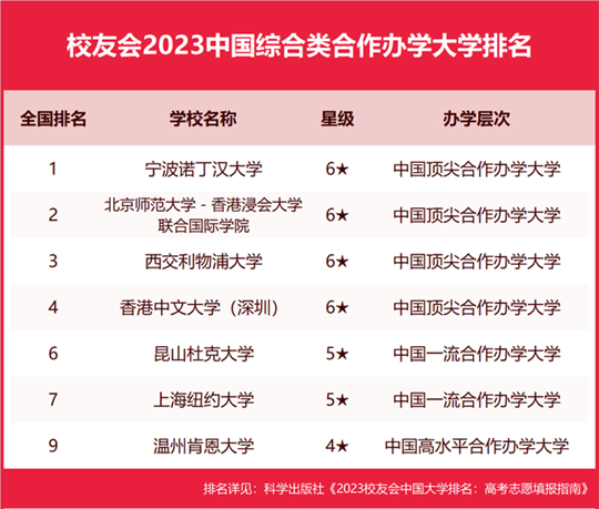 寧波諾丁漢大學(xué)名列2023中國(guó)綜合類合作辦學(xué)大學(xué)排名冠軍,香港中文大學(xué)(深圳)前五