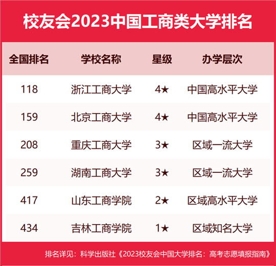 | 校友會2023中國工商類大學(xué)排名,浙江工商大學(xué)、武漢工商學(xué)院第一 |