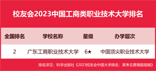 廣東工商職業(yè)技術(shù)大學(xué)穩(wěn)居2023中國工商類職業(yè)技術(shù)大學(xué)排名第一