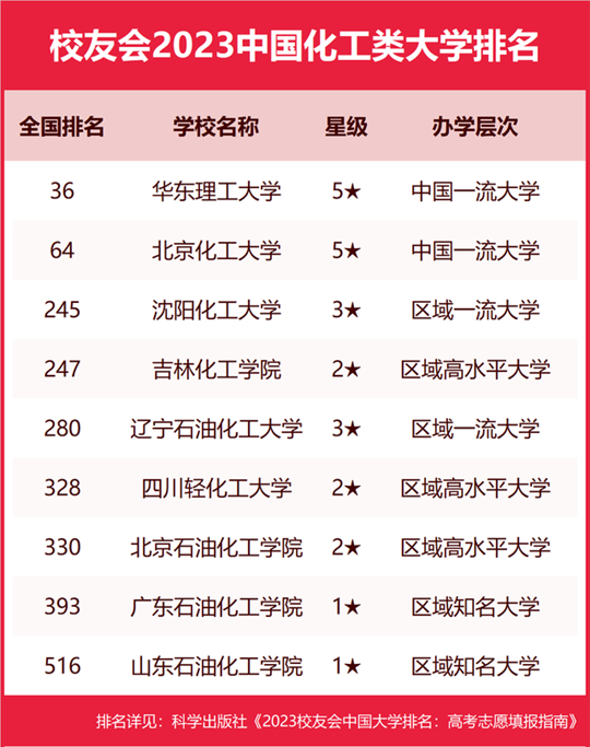 | 校友會2023中國化工類大學(xué)排名,華東理工大學(xué)、湖南化工職業(yè)技術(shù)學(xué)院第一 |