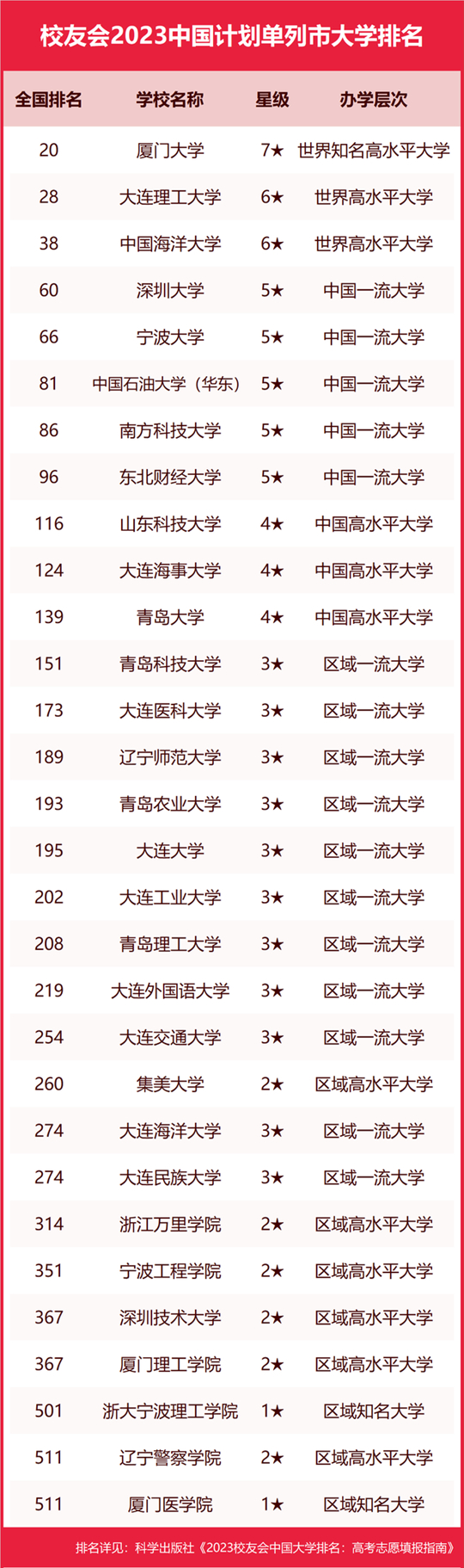 | 校友會2023中國計劃單列市大學(xué)排名,廈門大學(xué)、青島電影學(xué)院第一 |