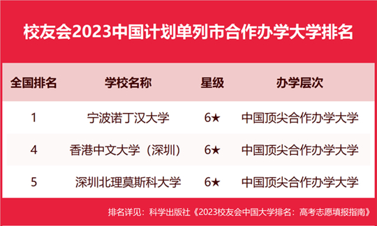 寧波諾丁漢大學(xué)名列2023中國計劃單列市合作辦學(xué)大學(xué)排名冠軍,香港中文大學(xué)(深圳)第二