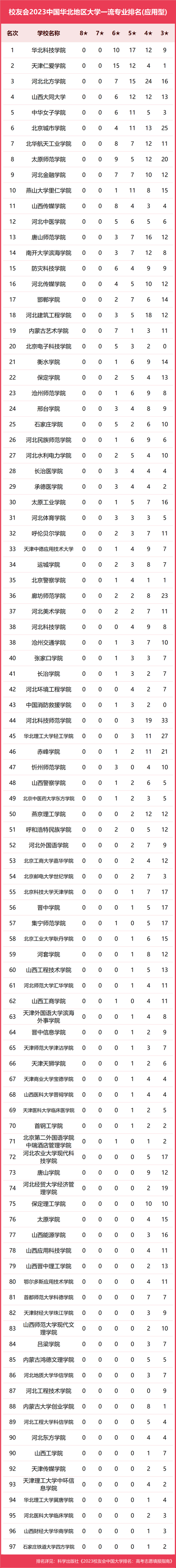 在最新校友會2023中國大學(xué)一流專業(yè)排名(應(yīng)用型)中,長春工程學(xué)院、黑龍江工程學(xué)院、沈陽城市學(xué)院、黑龍江財經(jīng)學(xué)院、長春財經(jīng)學(xué)院雄居校友會2023中國東北地區(qū)大學(xué)專業(yè)排名(應(yīng)用型)前5強。華北科技學(xué)院、天津仁愛學(xué)院、河北北方學(xué)院、山西大同大學(xué)、中華女子學(xué)院雄居校友會2023中國華北地區(qū)大學(xué)專業(yè)排名(應(yīng)用型)前5強。