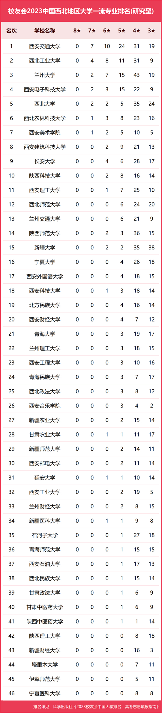 西安交通大學(xué)、西北工業(yè)大學(xué)、蘭州大學(xué)、西安電子科技大學(xué)、西北大學(xué)雄居校友會2023中國西北地區(qū)大學(xué)專業(yè)排名(研究型)前5強。