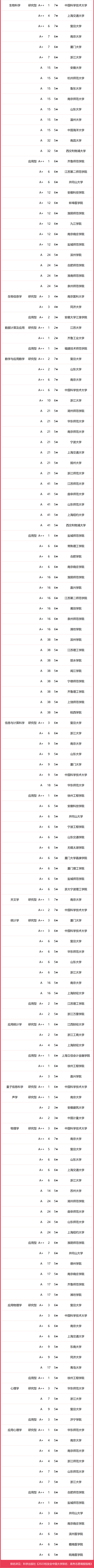 南京大學(xué)有1個中國八星級專業(yè)(8★),13個中國七星級專業(yè)(7★),17個中國六星級專業(yè)(6★),31個中國五星級專業(yè)(5★),25個中國四星級專業(yè)(4★),位居第4名。中國科學(xué)技術(shù)大學(xué)有1個中國八星級專業(yè)(8★),10個中國七星級專業(yè)(7★),11個中國六星級專業(yè)(6★),10個中國五星級專業(yè)(5★),7個中國四星級專業(yè)(4★),排名第5名。山東大學(xué)排名第6名。廈門大學(xué)排名第7名。同濟(jì)大學(xué)位列第8名。東南大學(xué)位居第9名。河海大學(xué)名列第10名。