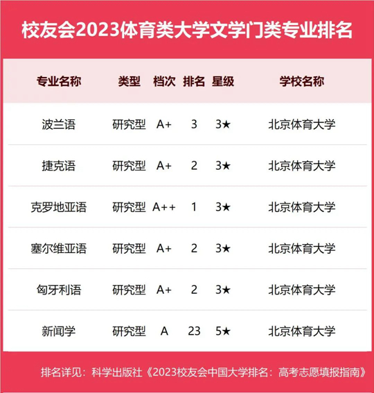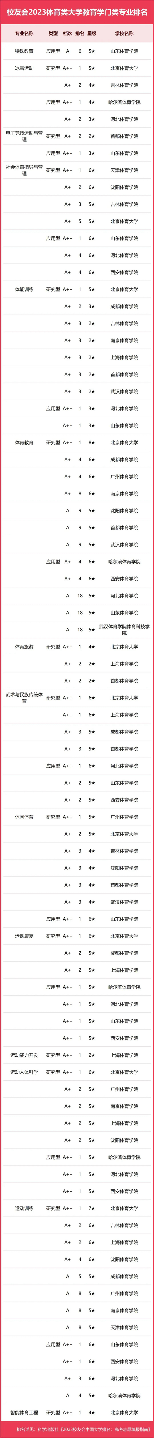 | 校友會(huì)2023中國(guó)體育類(lèi)大學(xué)一流專(zhuān)業(yè)排名,北京體育大學(xué)、西安體育學(xué)院第一 |