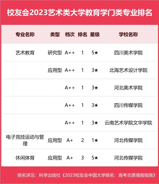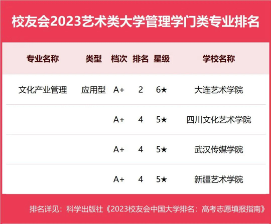 2023年全國(guó)高考即將到來,為了給2023年全國(guó)高考考生及家長(zhǎng)選擇報(bào)考中國(guó)藝術(shù)類高等學(xué)校提供參考指南,全國(guó)第三方大學(xué)評(píng)價(jià)機(jī)構(gòu)艾瑞深校友會(huì)網(wǎng)撰寫完成、科學(xué)出版社即將出版發(fā)行的《2023校友會(huì)中國(guó)大學(xué)排名:高考志愿填報(bào)指南》最新發(fā)布校友會(huì)2023中國(guó)藝術(shù)類大學(xué)一流專業(yè)排名、2023中國(guó)藝術(shù)類大學(xué)各門類專業(yè)排名。