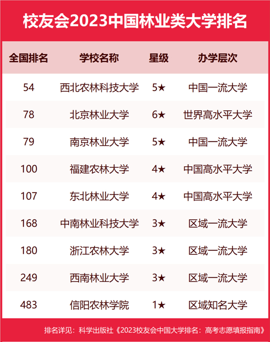 | 校友會(huì)2023中國林業(yè)類大學(xué)排名,西北農(nóng)林科技大學(xué)、云南林業(yè)職業(yè)技術(shù)學(xué)院第一 |