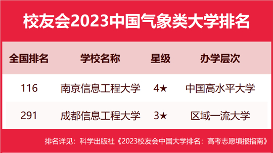 | 校友會2023中國氣象類大學(xué)排名,南京信息工程大學(xué)第一,成都信息工程大學(xué)第二 |