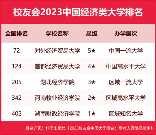 | 校友會2023中國經濟類大學排名,對外經濟貿易大學第一,湖北經濟學院前三 |