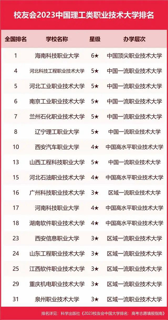 海南科技職業(yè)大學(xué)問(wèn)鼎2023中國(guó)理工類職業(yè)技術(shù)大學(xué)排名第一,廣州科技職業(yè)技術(shù)大學(xué)前十