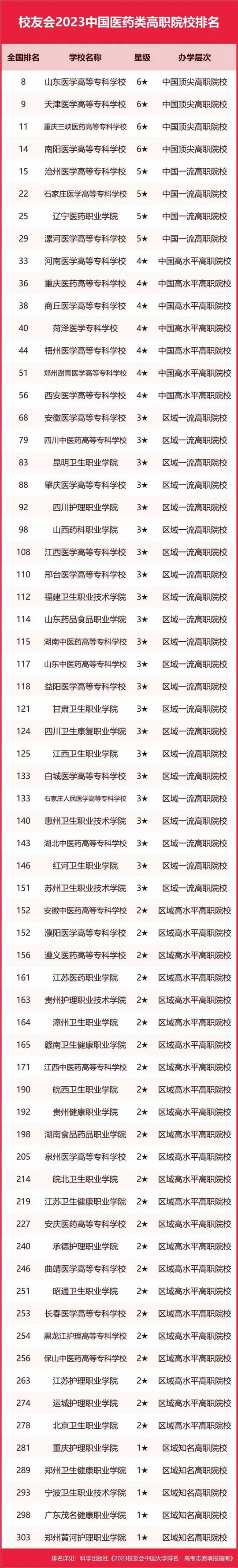山東醫(yī)學(xué)高等?茖W(xué)校位列2023中國(guó)醫(yī)藥類高職院校排名冠軍,遼寧醫(yī)藥職業(yè)學(xué)院前十