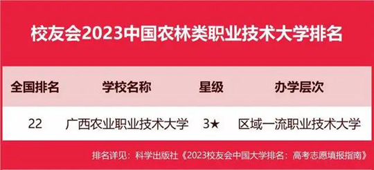 廣西農(nóng)業(yè)職業(yè)技術(shù)大學(xué)雄居2023中國(guó)農(nóng)林類職業(yè)技術(shù)大學(xué)排名榜首