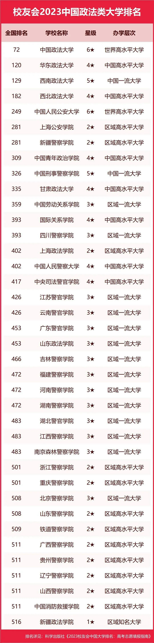 | 校友會2023中國政法類大學(xué)排名,中國政法大學(xué)第一,西南政法大學(xué)前三 |