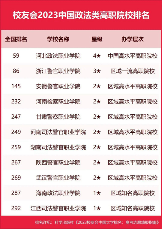 河北政法職業(yè)學(xué)院高居校友會2023中國政法類高職院校排名冠軍