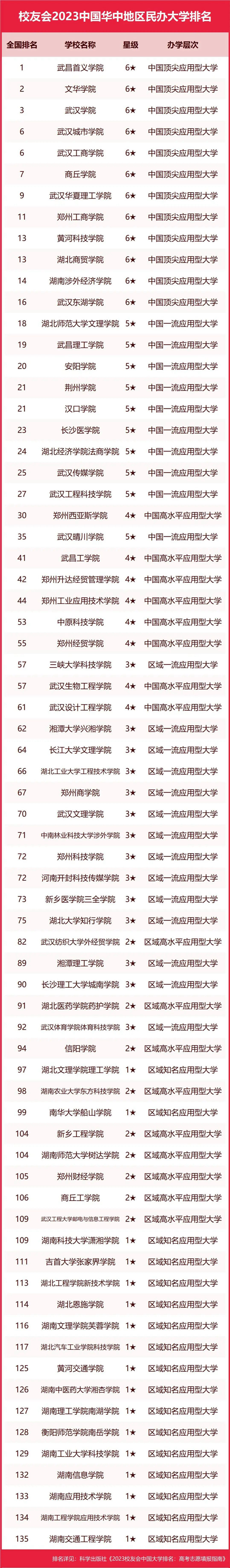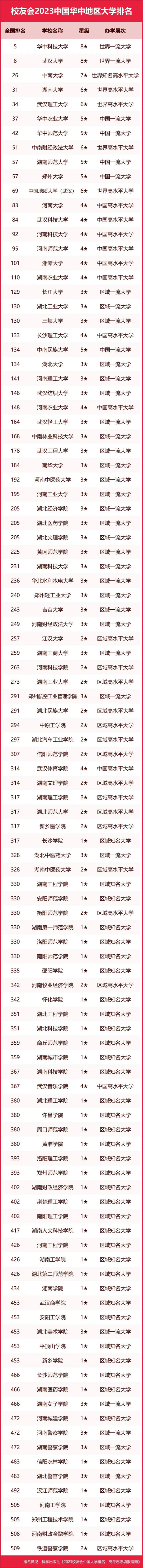 | 校友會(huì)2023中國華中地區(qū)大學(xué)排名,華中科技大學(xué)、武昌首義學(xué)院第一 |