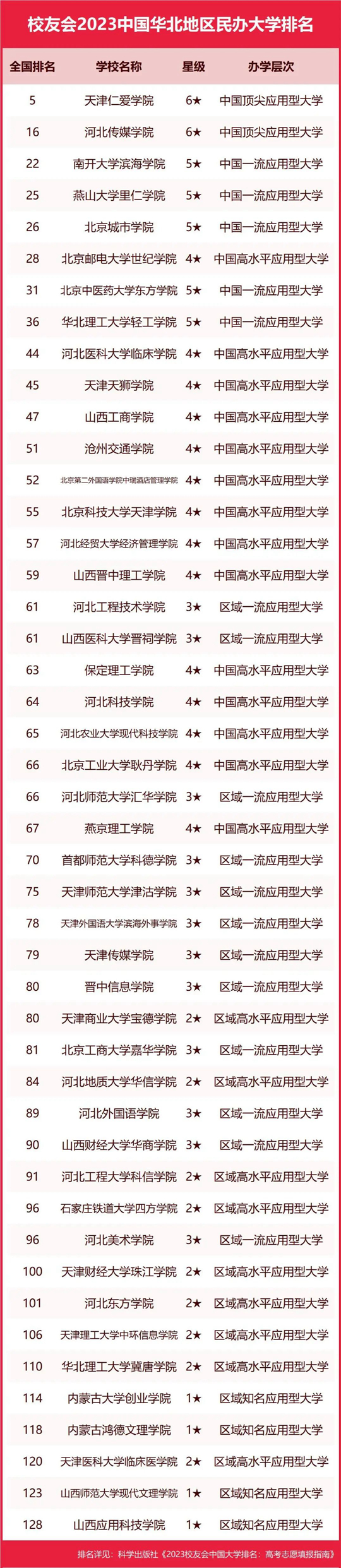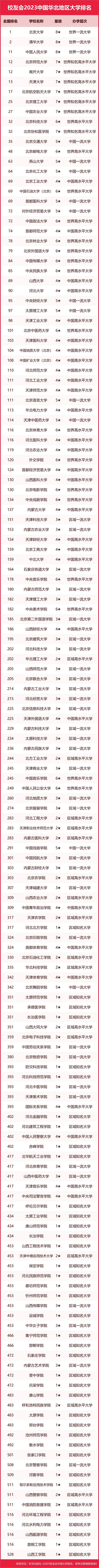 | 校友會2023中國華北地區(qū)大學(xué)排名,北京大學(xué)、天津仁愛學(xué)院第一 |