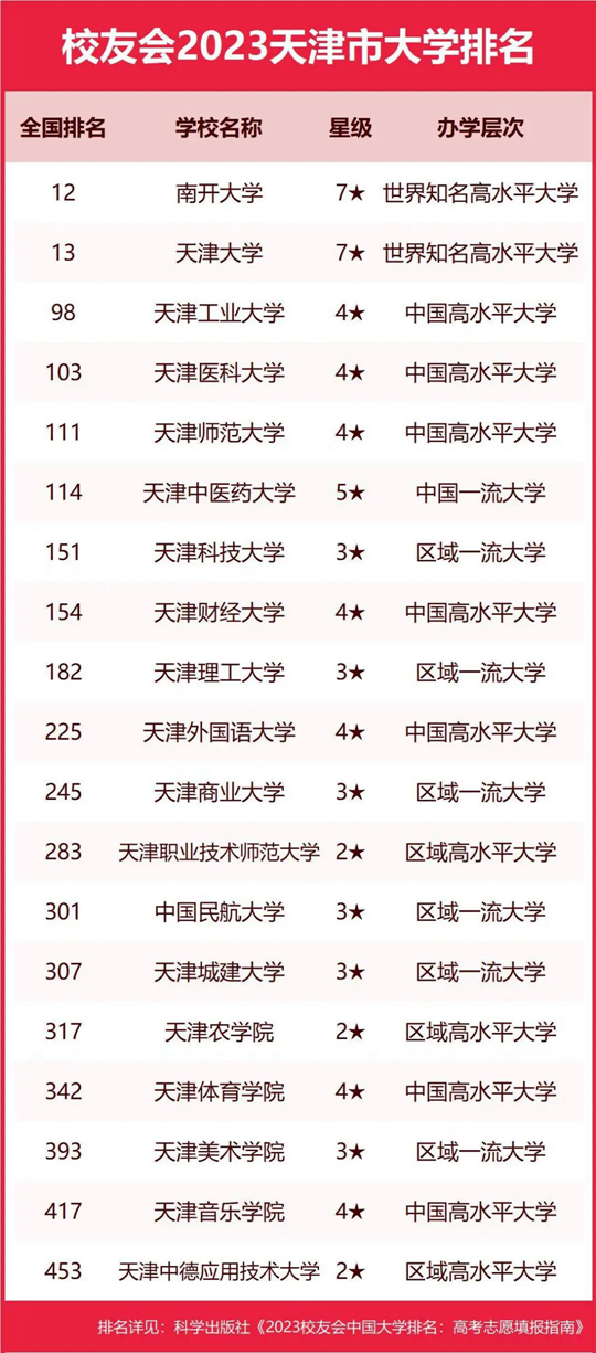 | 校友會2023天津市大學排名,南開大學、天津仁愛學院等第一 |