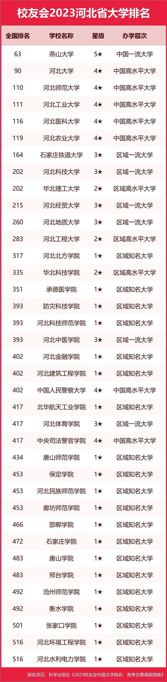 | 校友會(huì)2023河北省大學(xué)排名,燕山大學(xué)、河北傳媒學(xué)院等第一 |