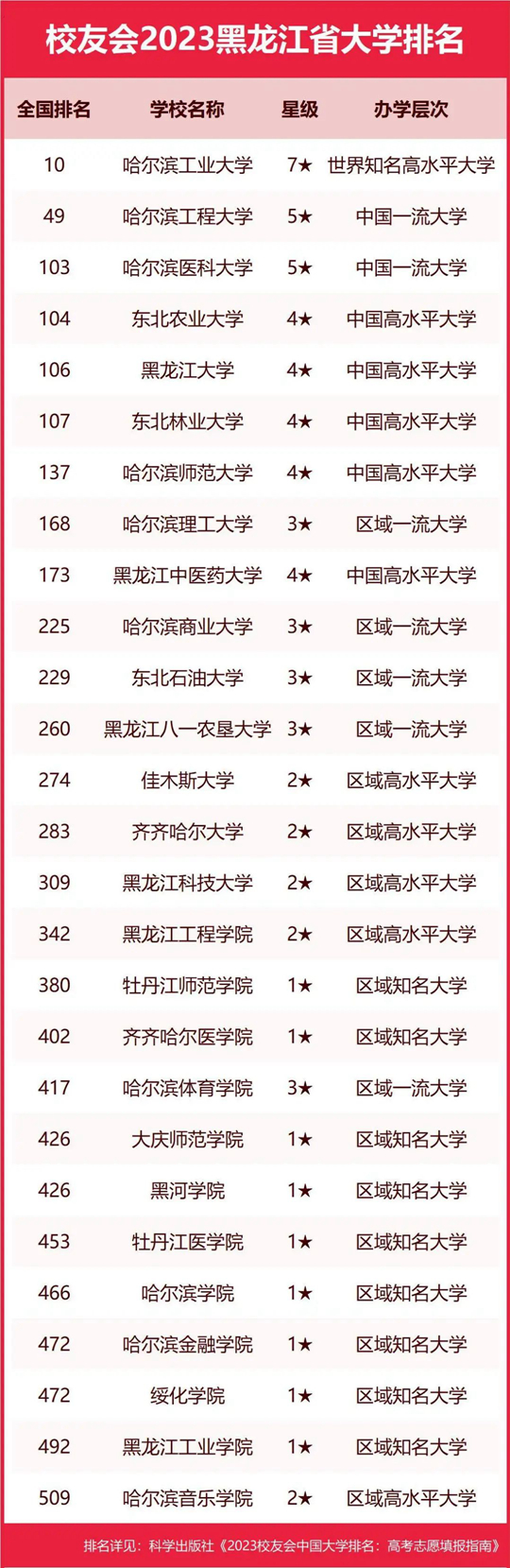 | 校友會2023黑龍江省大學(xué)排名,哈爾濱工業(yè)大學(xué)、黑龍江財院、黑龍江外院等第一 |