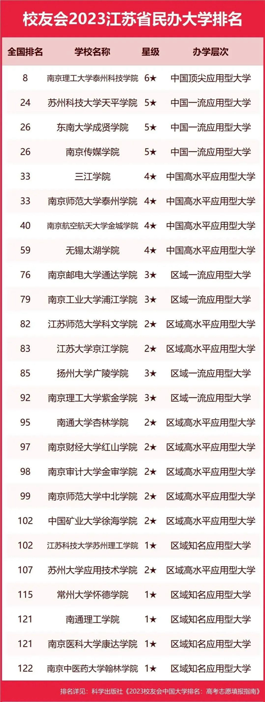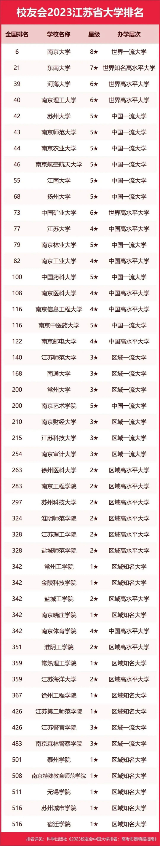 | 校友會2023江蘇省大學排名,南京大學、南京理工大學泰州科技學院等第一 |