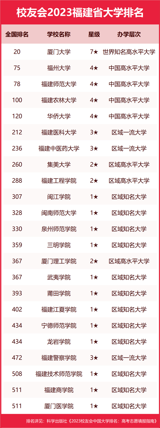 | 校友會(huì)2023福建省大學(xué)排名,廈門大學(xué)、福州外語外貿(mào)學(xué)院等第一 |
