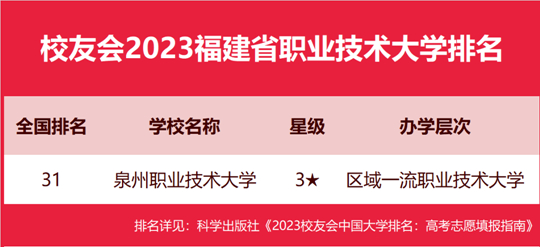 泉州職業(yè)技術(shù)大學(xué)榮登校友會(huì)2023福建省職業(yè)技術(shù)大學(xué)排名冠軍