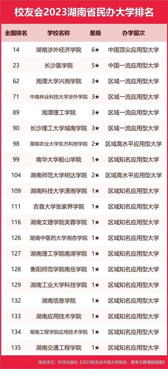 為了給2023年全國高考考生和家長選擇填報湖南省高等院校提供報考指南,2023年4月6日,全國第三方大學評價機構艾瑞深校友會網撰寫完成、科學出版社即將出版發(fā)行的《2023校友會中國大學排名:高考志愿填報指南》最新發(fā)布校友會2023湖南省大學排名。