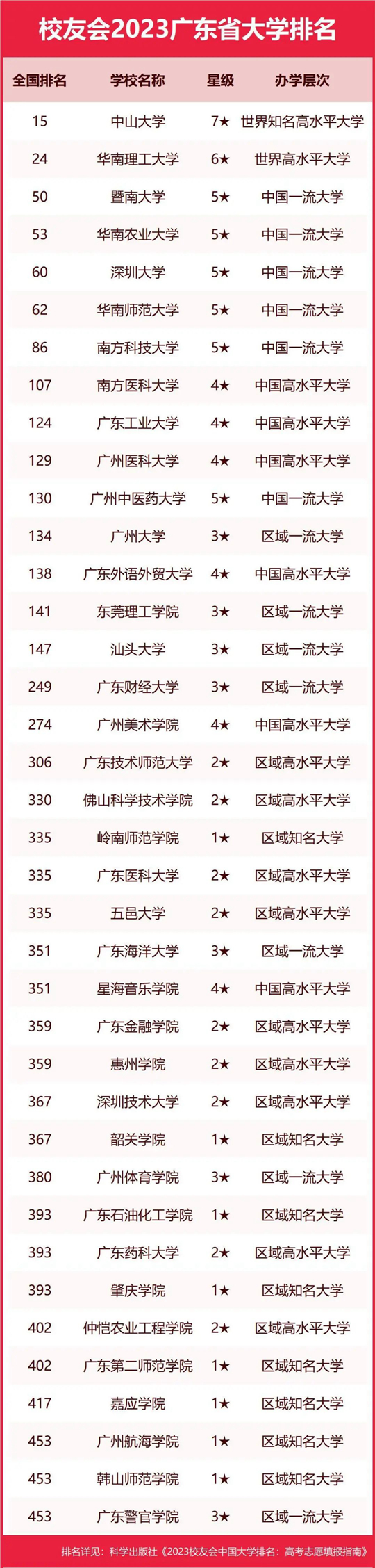 | 校友會(huì)2023廣東省大學(xué)排名,中山大學(xué)、廣州南方學(xué)院等第一 |