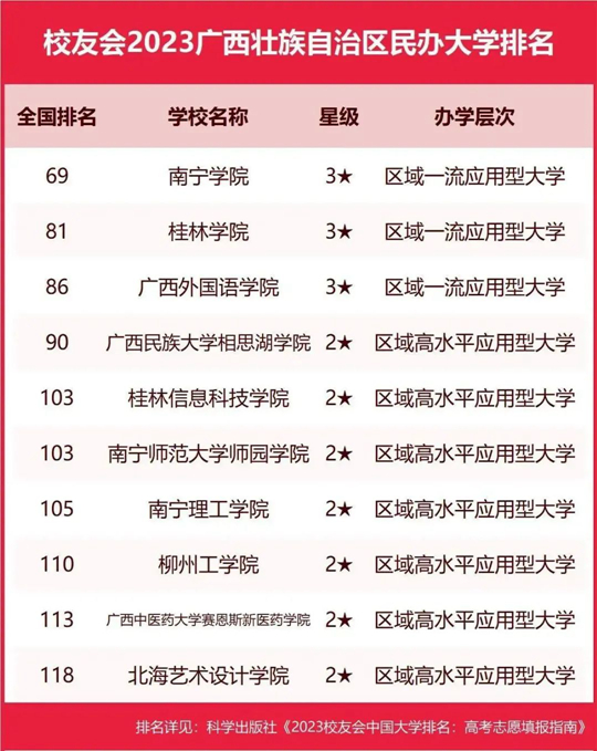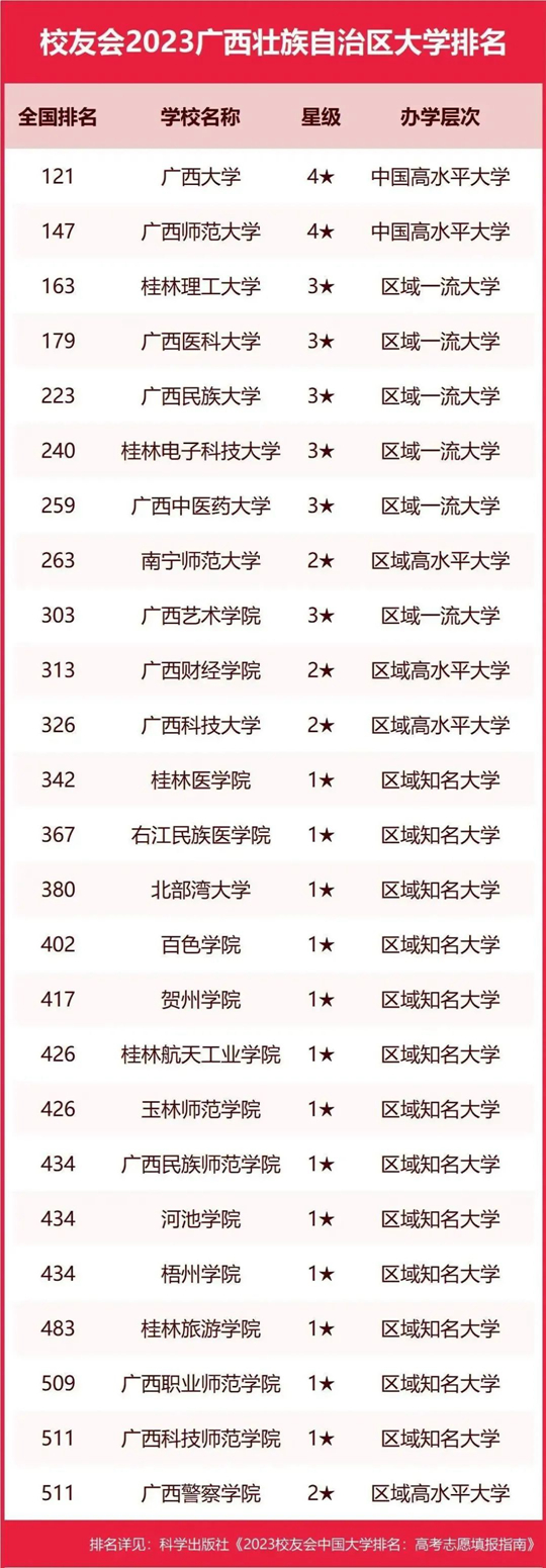 | 校友會2023廣西壯族自治區(qū)大學排名,廣西大學、南寧學院第一 |