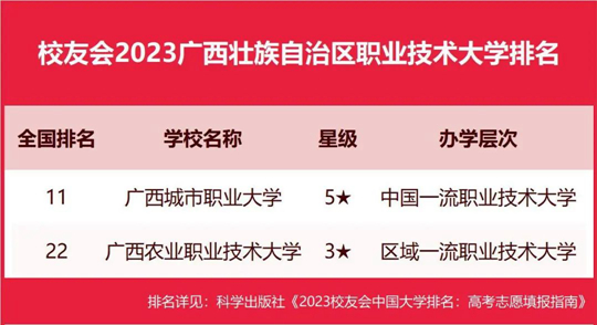 廣西城市職業(yè)大學名列校友會2023廣西壯族自治區(qū)職業(yè)技術(shù)大學排名榜首