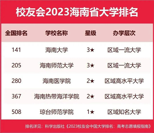 | 校友會2023海南省大學(xué)排名,海南大學(xué)、三亞學(xué)院等第一 |