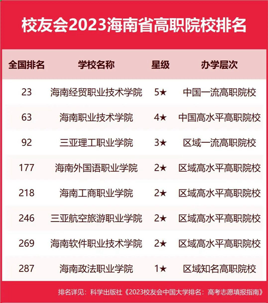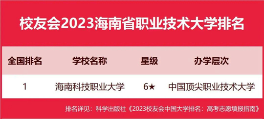 海南科技職業(yè)大學(xué)位居校友會2023海南省職業(yè)技術(shù)大學(xué)排名冠軍