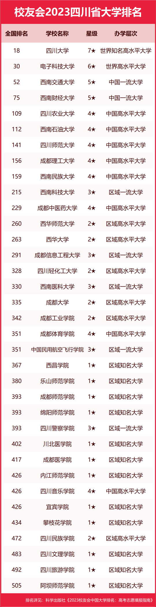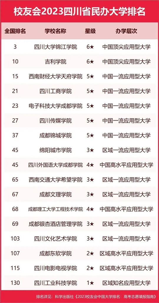 | 校友會2023四川省大學(xué)排名,四川大學(xué)、四川大學(xué)錦江學(xué)院等第一 |