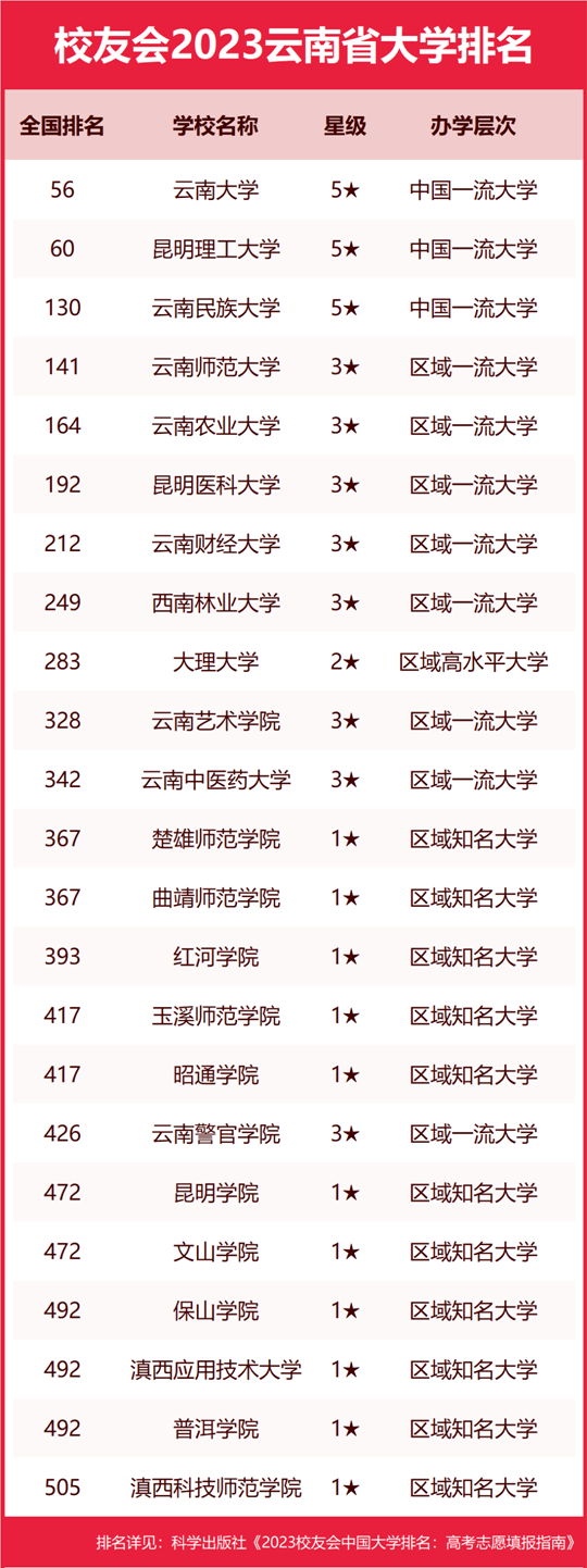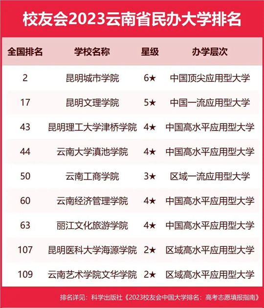 | 校友會(huì)2023云南省大學(xué)排名,云南大學(xué)、昆明城市學(xué)院第一 |